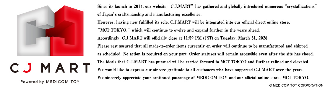 - 2026.03.04For inquiries after the site closure, please continue to contact us at the C.J.MART email address (info@cjmart.jp).